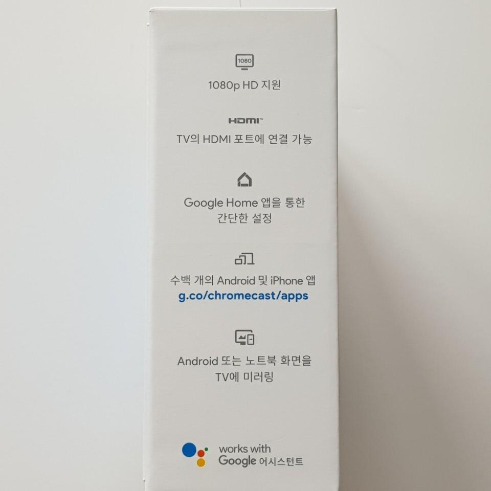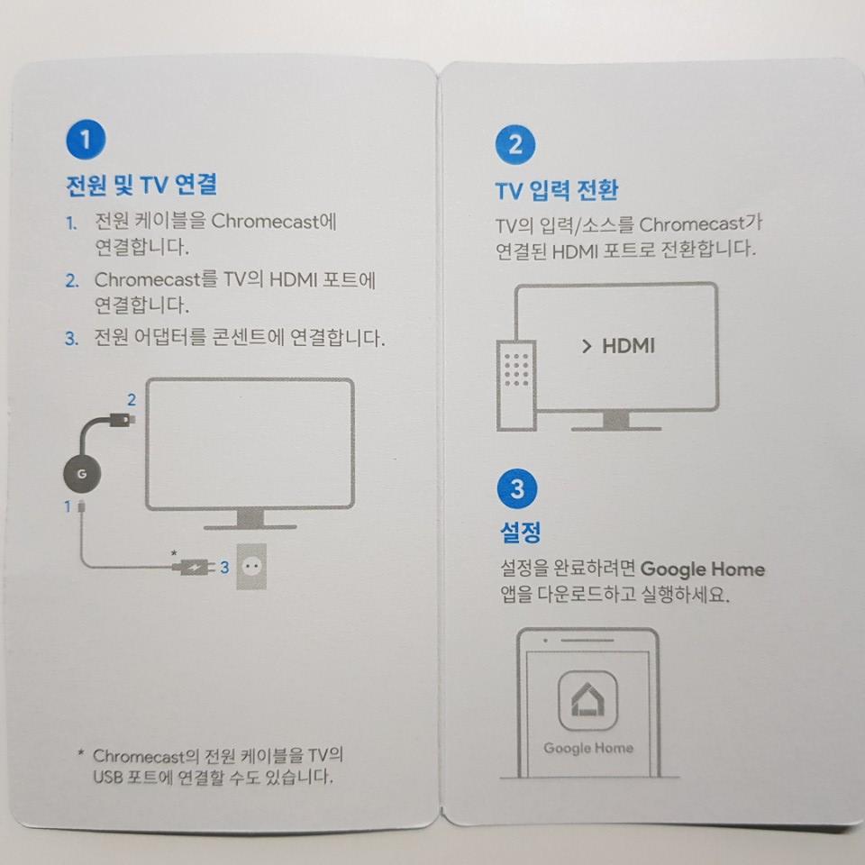 작은 상자를 열면 안에 크롬 케스트, 전원 케이블, 전원 아텝터, 설명서 가 들어있어요.
